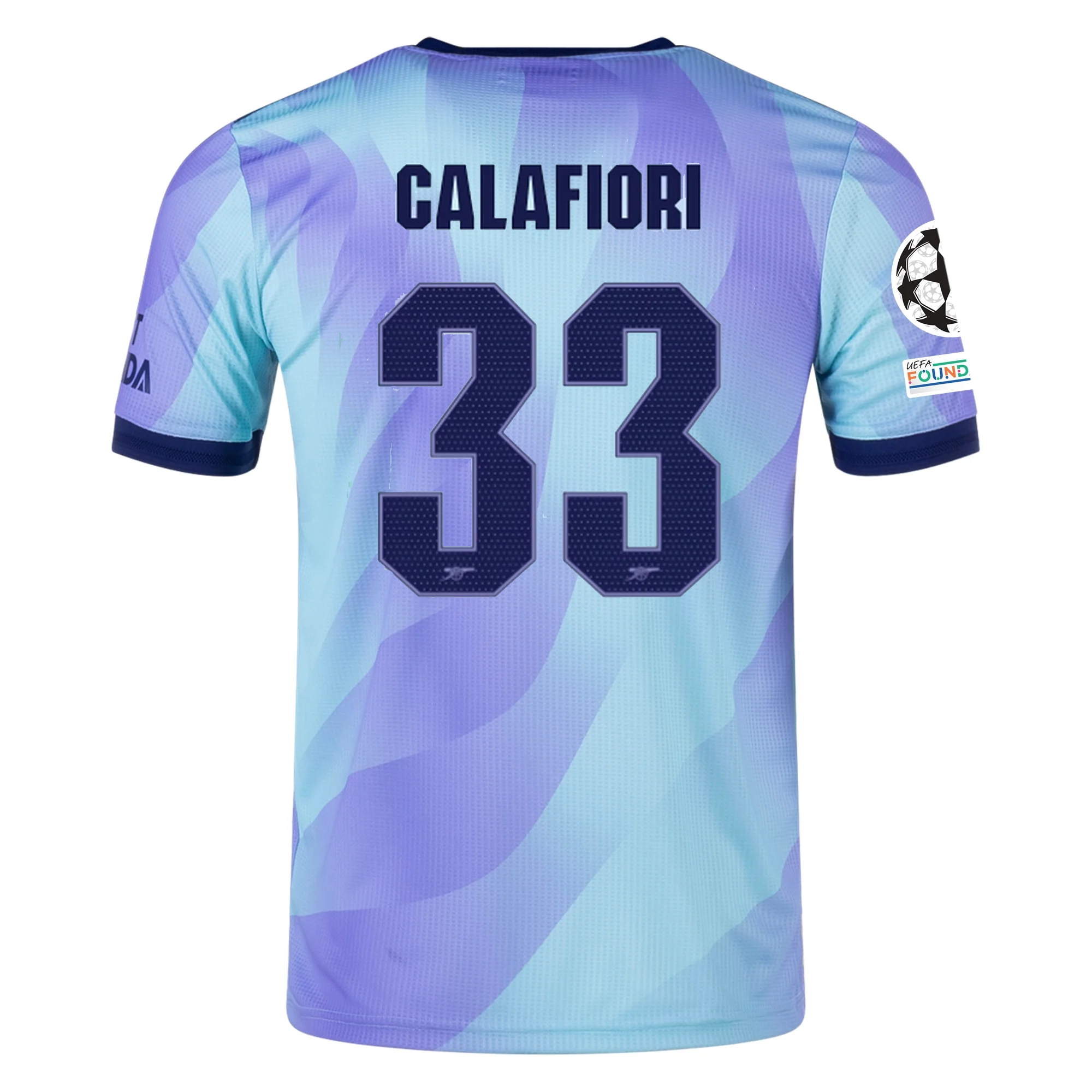 adidas Arsenal Authentic Riccardo Calafiori Third Jersey w/ Champions League Patches 24/25 (Clear Aqua/Light Flash Purple)