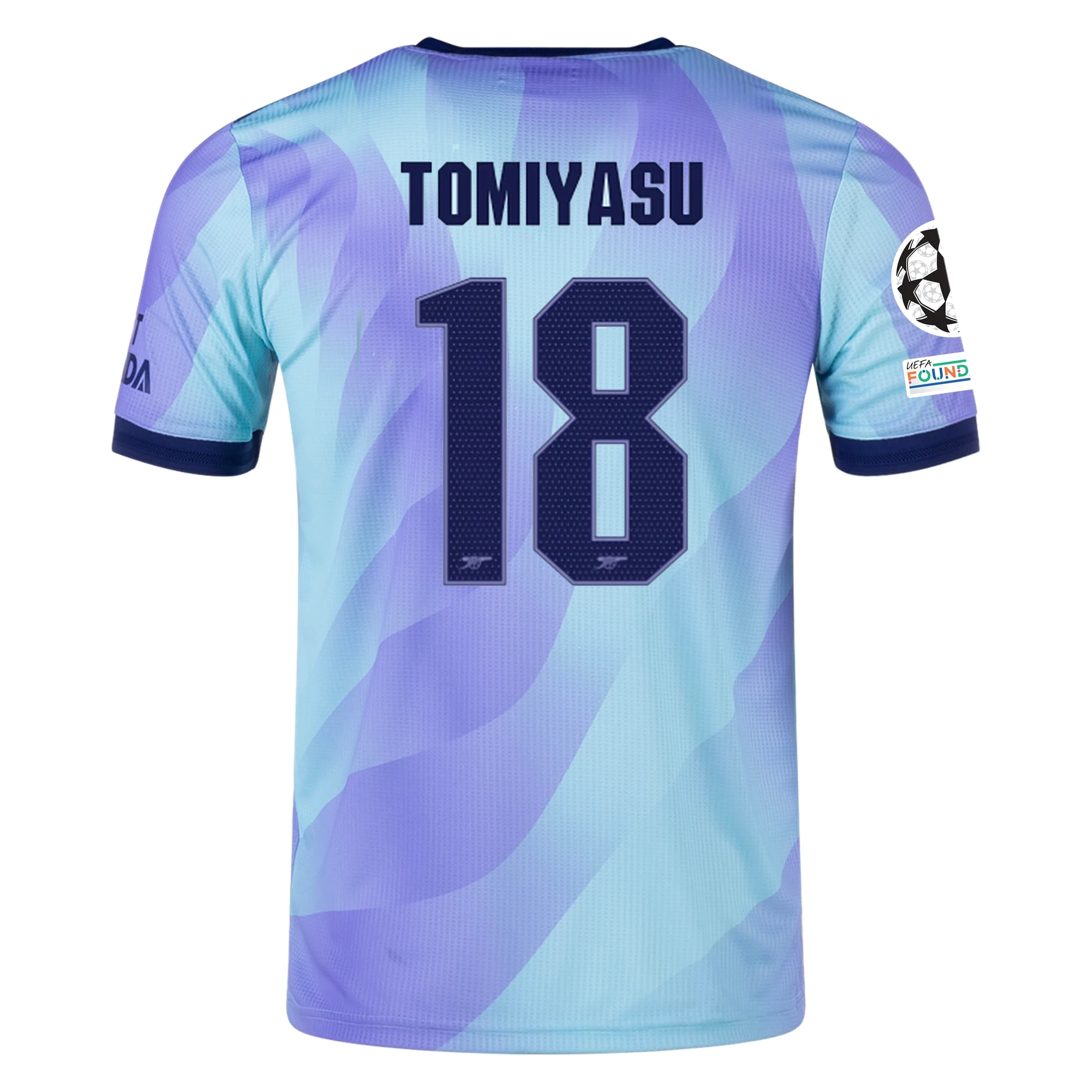 adidas Arsenal Authentic Takehiro Tomiyasu Third Jersey w/ Champions League Patches 24/25 (Clear Aqua/Light Flash Purple)