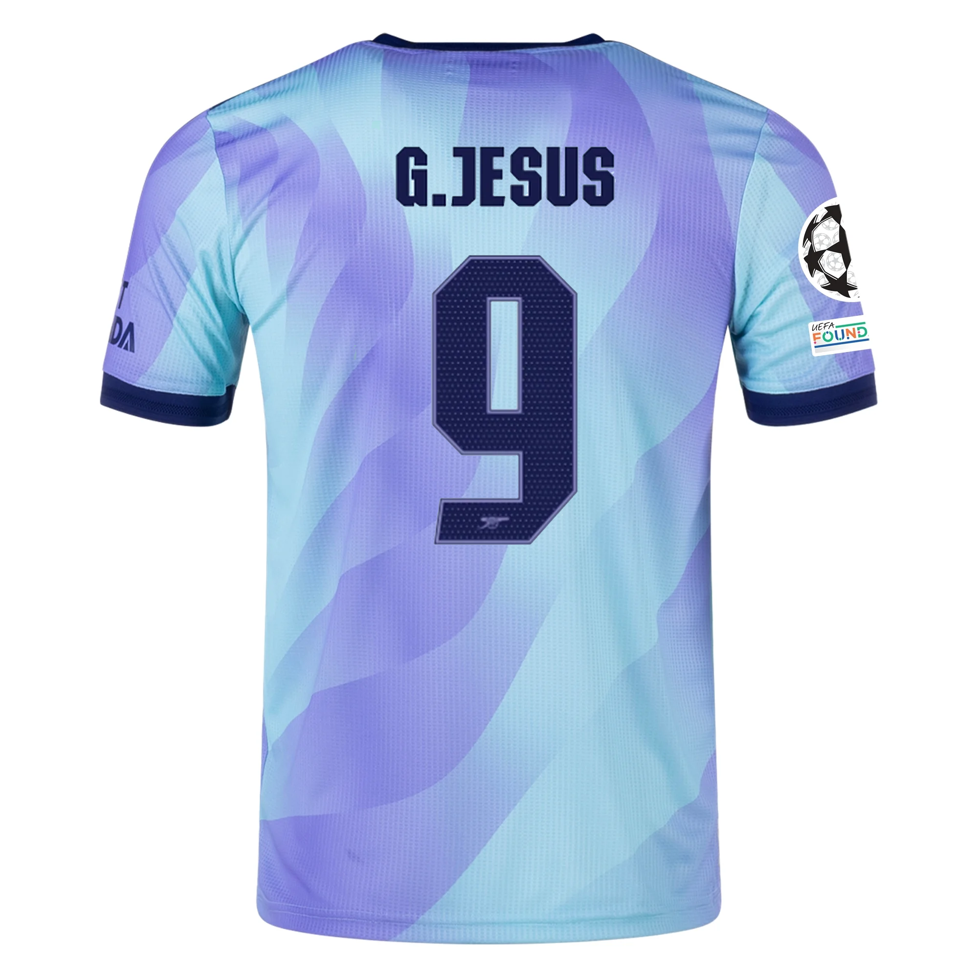 adidas Arsenal Authentic Gabriel Jesus Third Jersey w/ Champions League Patches 24/25 (Clear Aqua/Light Flash Purple)